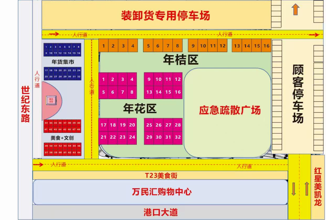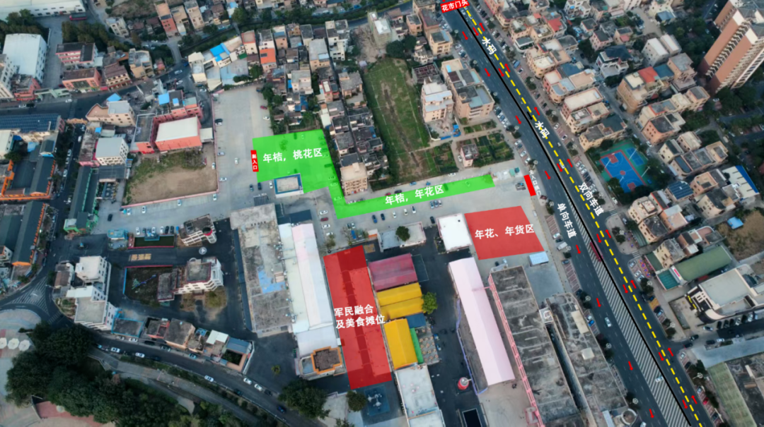 港口鎮(zhèn)迎春花市共設四個區(qū)域,分別是年桔區(qū)域、年花區(qū)域、年貨集市、美食集市,目前還在招商中。