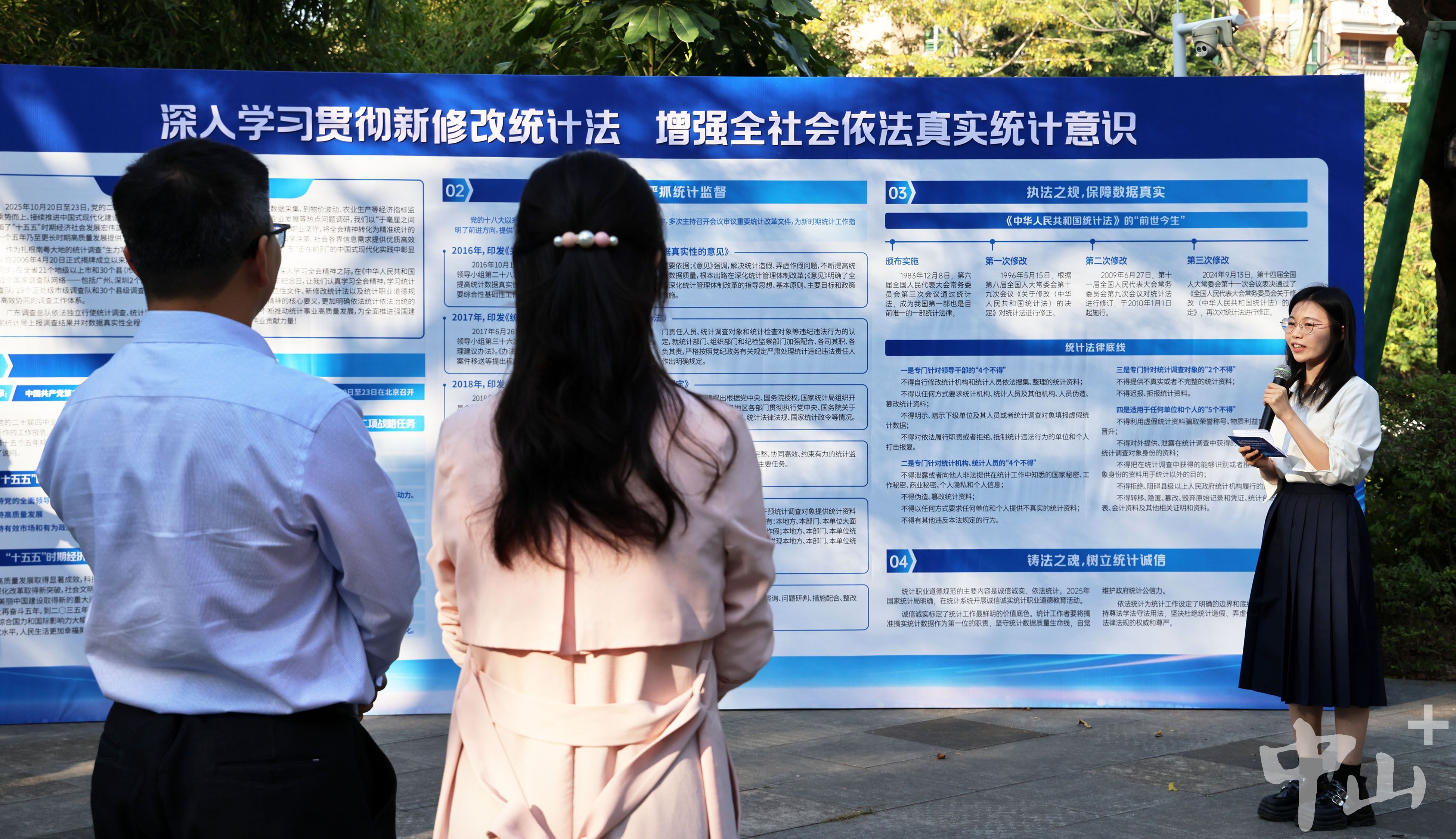 設(shè)置統(tǒng)計法治大轉(zhuǎn)盤小游戲吸引市民打卡,立起展板宣傳新修改的統(tǒng)計法……依托中山法治文化公園“憲法墻”,這次活動通過多種群眾喜聞樂見的方式,宣傳黨的二十屆四中全會精神和新修改統(tǒng)計法及統(tǒng)計調(diào)查制度方法等內(nèi)容?;顒舆€在中山市檔案館設(shè)置法治宣傳主題展覽,向市民長期開放。