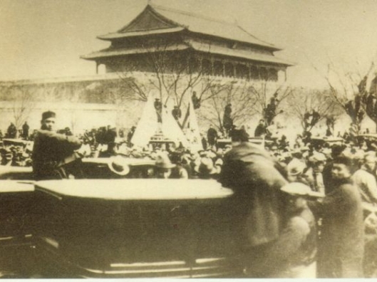 1929年10月14日,梅屋莊吉在南京軍官學(xué)校舉行的第一尊孫中山銅像揭幕典禮上致詞照片