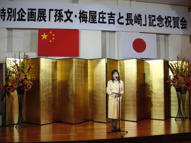 梅屋莊吉曾外孫女小坂文乃女士在“孫中山?梅屋莊吉與長(zhǎng)崎”專(zhuān)題展紀(jì)念祝賀會(huì)上致詞