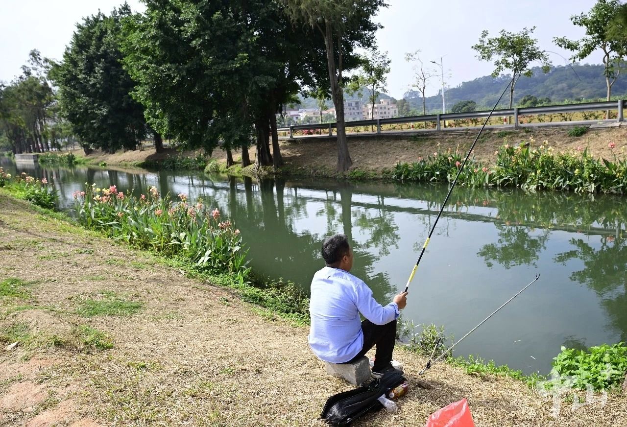 火炬高新區(qū)濠頭涌畔,釣者三三兩兩,在冬日暖陽(yáng)下盡享垂釣休閑時(shí)光。郭文?,F(xiàn)場(chǎng)察看治水成效,與村干部、村民深入交流。